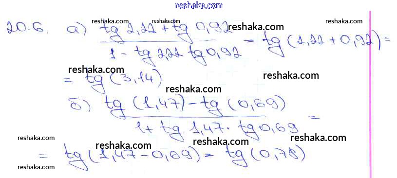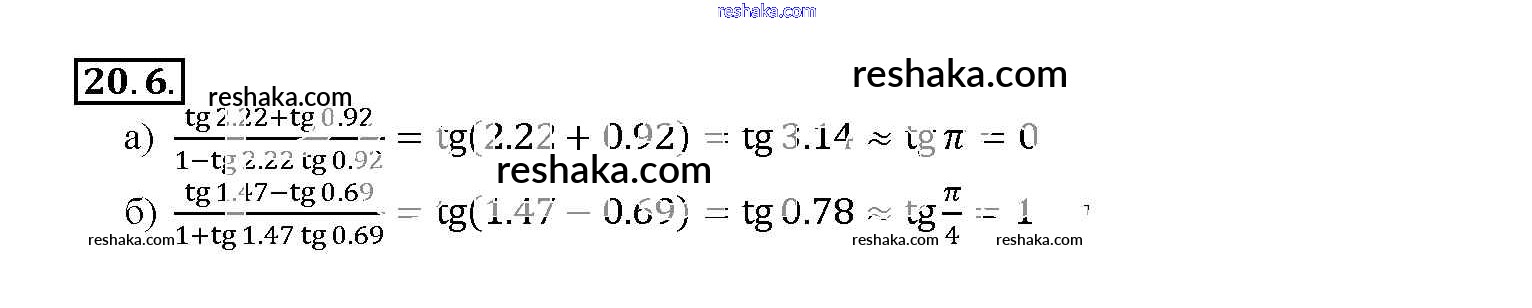 Представляем вам сборники по Алгебре, с готовыми ответами к Задачнику Мордкович школьной программы для учеников десятый-одиннадцатый класса. Это не просто гдз с ответом, а с подсказками, как верно решить §20. Тангенс суммы и разности аргументов Глава 4 20. 6. Проверяй домашку с умом и получай высший балл!