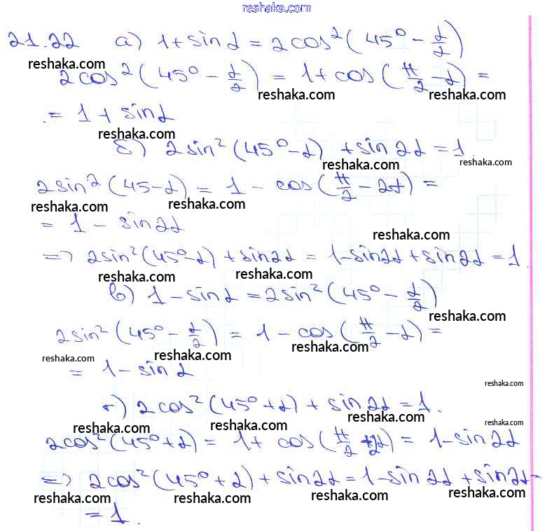 Решака - онлайн ответы Алгебра Мордкович, Денищева за 10-11 класс Задачник Базовый уровень ФГОС 2015 - 21. 22