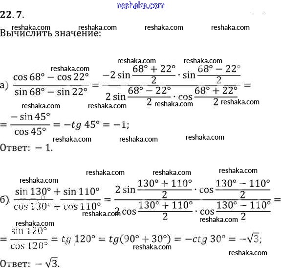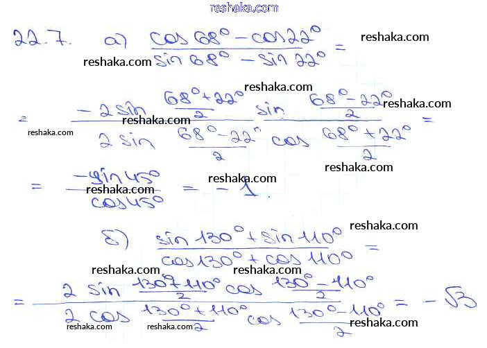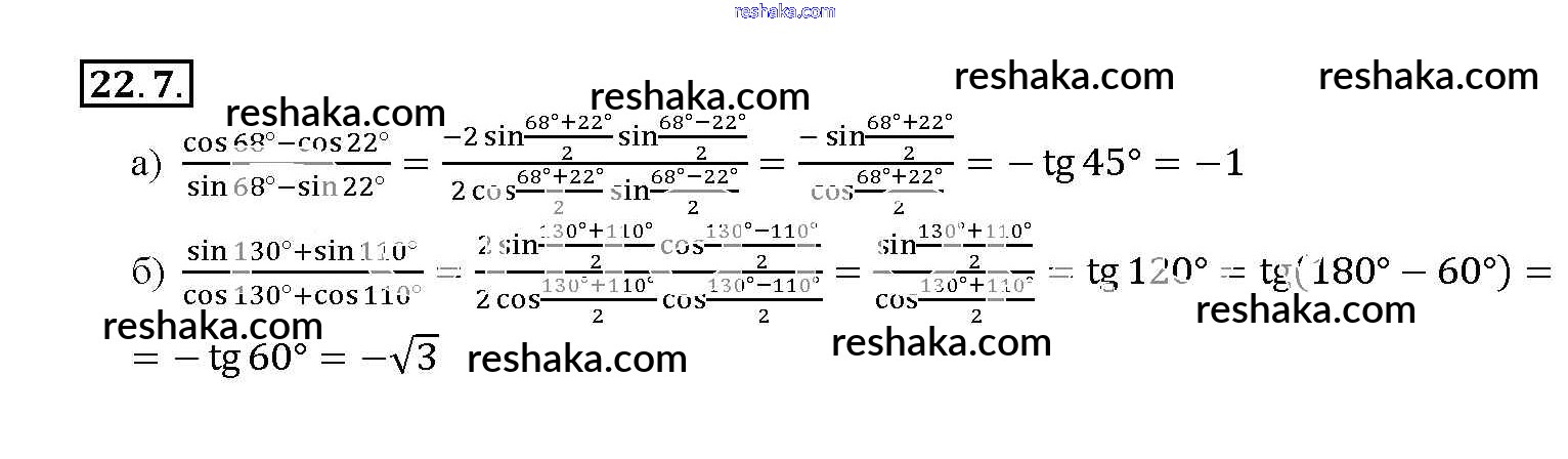 Представляем вам сборники по Алгебре, с готовыми ответами к Задачнику Мордкович школьной программы для учеников десятый-одиннадцатый класса. Это не просто гдз с ответом, а с подсказками, как верно решить §22. Преобразование суммы тригонометрических функций в произведения Глава 4 22. 7. Проверяй домашку с умом и получай высший балл!