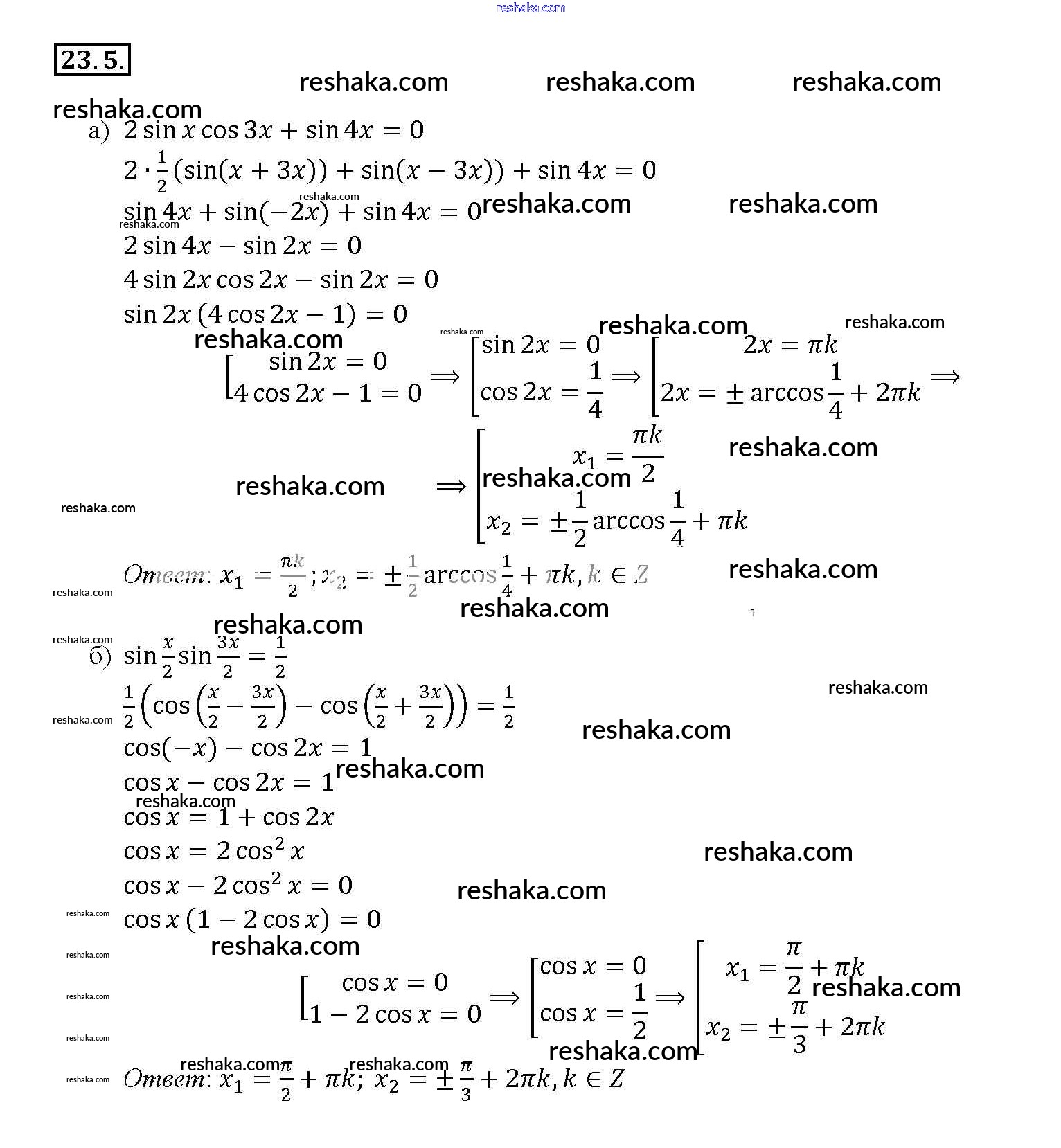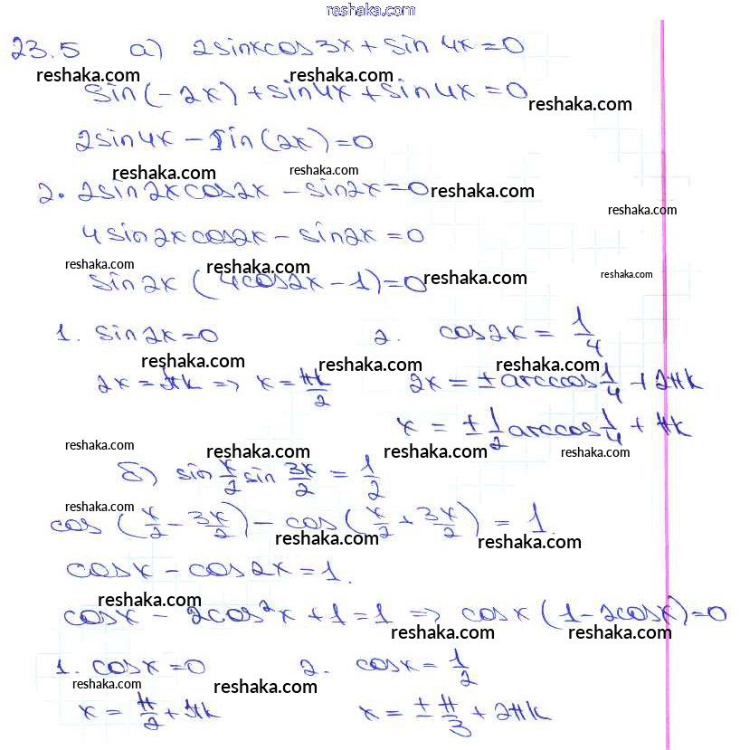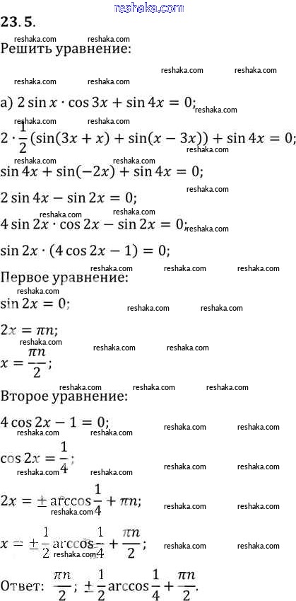 Представляем вам сборники по Алгебре, с готовыми ответами к Задачнику Мордкович школьной программы для учеников десятый-одиннадцатый класса. Это не просто гдз с ответом, а с подсказками, как верно решить §23. Преобразование произведений тригонометрических функций в суммы Глава 4 23. 5. Проверяй домашку с умом и получай высший балл!