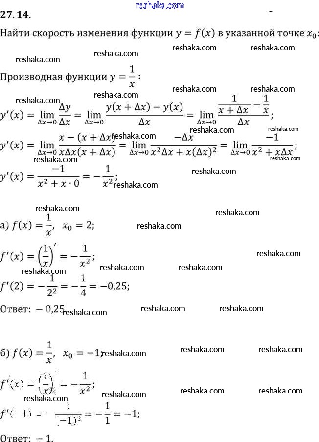 Представляем вам сборники по Алгебре, с готовыми ответами к Задачнику Мордкович школьной программы для учеников десятый-одиннадцатый класса. Это не просто гдз с ответом, а с подсказками, как верно решить §27. Определение производной Глава 5 27. 14. Проверяй домашку с умом и получай высший балл!