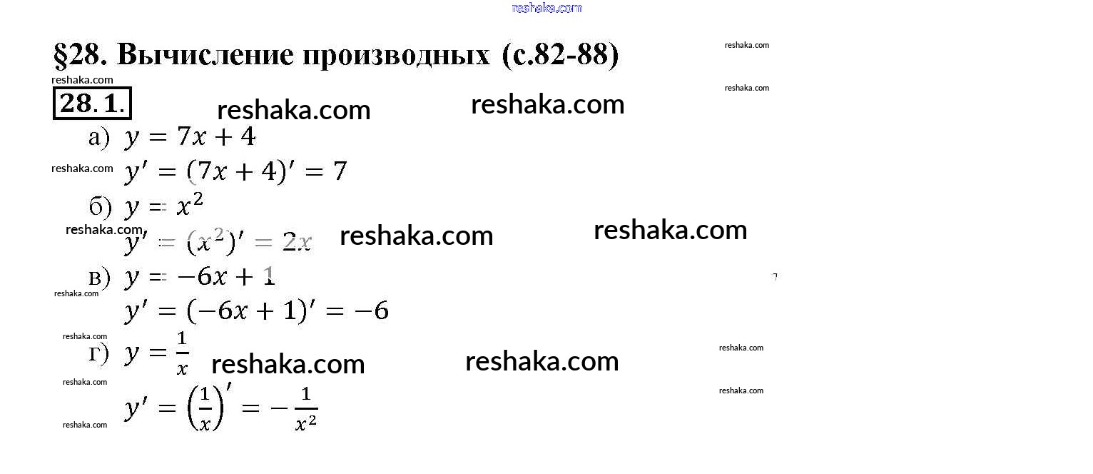 Представляем вам сборники по Алгебре, с готовыми ответами к Задачнику Мордкович школьной программы для учеников десятый-одиннадцатый класса. Это не просто гдз с ответом, а с подсказками, как верно решить §28. Вычисление производных Глава 5 28. 1. Проверяй домашку с умом и получай высший балл!