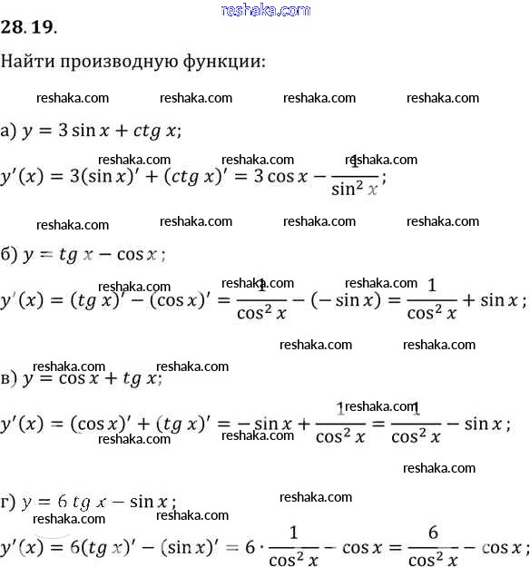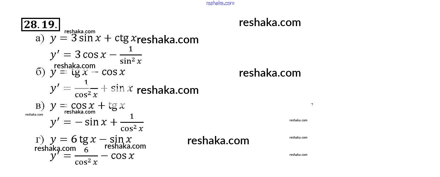 Представляем вам сборники по Алгебре, с готовыми ответами к Задачнику Мордкович школьной программы для учеников десятый-одиннадцатый класса. Это не просто гдз с ответом, а с подсказками, как верно решить §28. Вычисление производных Глава 5 28. 19. Проверяй домашку с умом и получай высший балл!