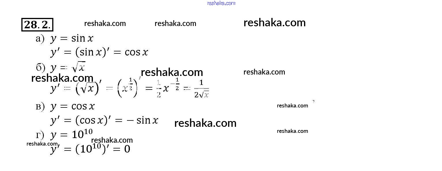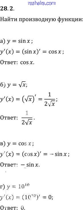 Представляем вам сборники по Алгебре, с готовыми ответами к Задачнику Мордкович школьной программы для учеников десятый-одиннадцатый класса. Это не просто гдз с ответом, а с подсказками, как верно решить §28. Вычисление производных Глава 5 28. 2. Проверяй домашку с умом и получай высший балл!