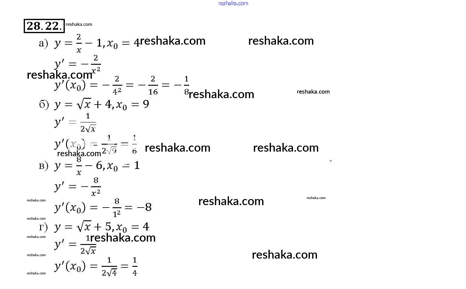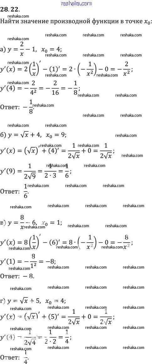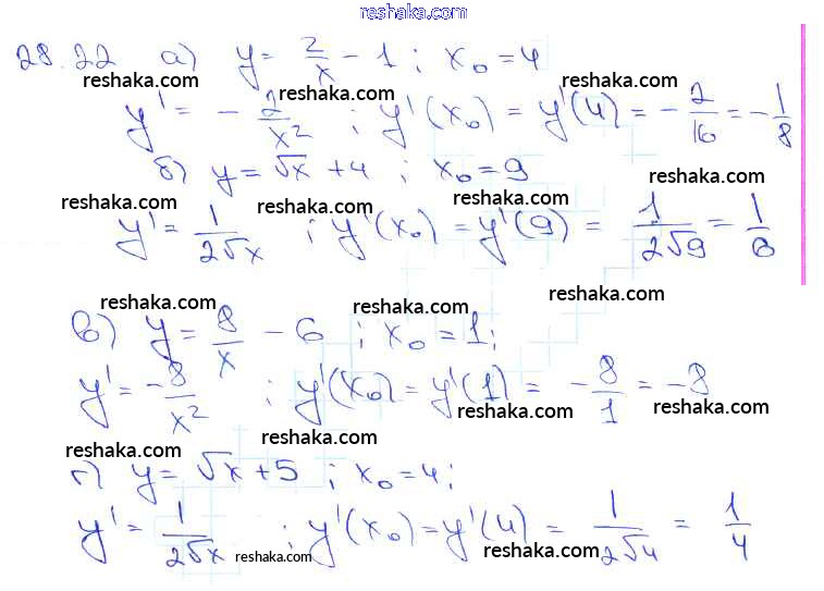 Представляем вам сборники по Алгебре, с готовыми ответами к Задачнику Мордкович школьной программы для учеников десятый-одиннадцатый класса. Это не просто гдз с ответом, а с подсказками, как верно решить §28. Вычисление производных Глава 5 28. 22. Проверяй домашку с умом и получай высший балл!