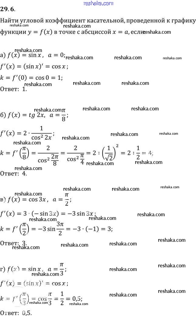Представляем вам сборники по Алгебре, с готовыми ответами к Задачнику Мордкович школьной программы для учеников десятый-одиннадцатый класса. Это не просто гдз с ответом, а с подсказками, как верно решить §29. Уравнение касательной к графику функции Глава 5 29. 6. Проверяй домашку с умом и получай высший балл!