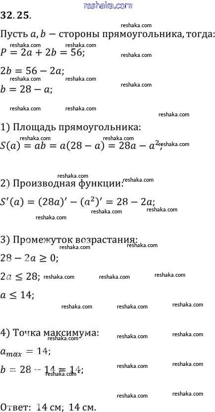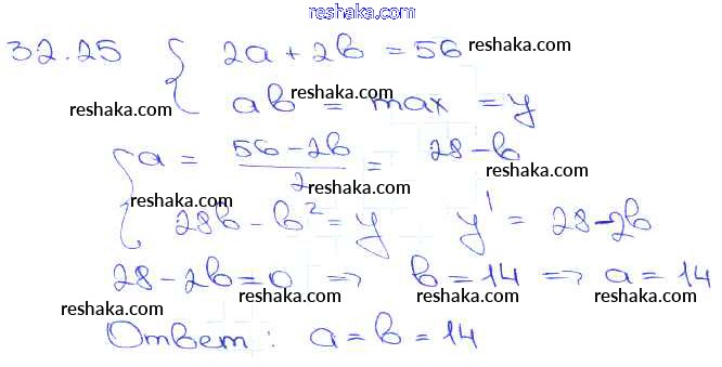 Представляем вам сборники по Алгебре, с готовыми ответами к Задачнику Мордкович школьной программы для учеников десятый-одиннадцатый класса. Это не просто гдз с ответом, а с подсказками, как верно решить §32. Применение производной для нахождения наибольших и наименьших значений величин Глава 5 32. 25. Проверяй домашку с умом и получай высший балл!