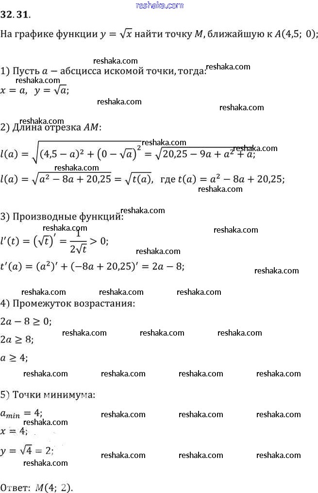 Представляем вам сборники по Алгебре, с готовыми ответами к Задачнику Мордкович школьной программы для учеников десятый-одиннадцатый класса. Это не просто гдз с ответом, а с подсказками, как верно решить §32. Применение производной для нахождения наибольших и наименьших значений величин Глава 5 32. 31. Проверяй домашку с умом и получай высший балл!