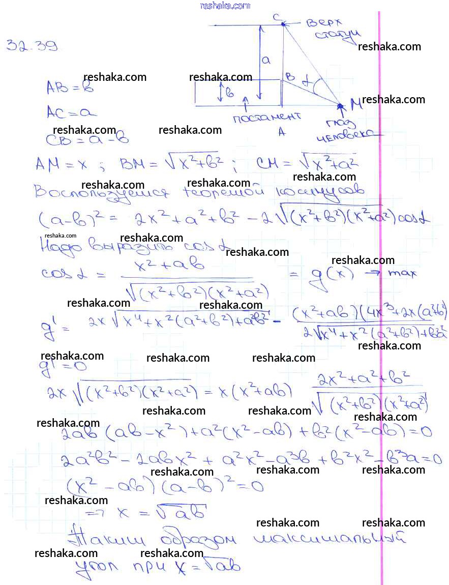 Представляем вам сборники по Алгебре, с готовыми ответами к Задачнику Мордкович школьной программы для учеников десятый-одиннадцатый класса. Это не просто гдз с ответом, а с подсказками, как верно решить §32. Применение производной для нахождения наибольших и наименьших значений величин Глава 5 32. 39. Проверяй домашку с умом и получай высший балл!