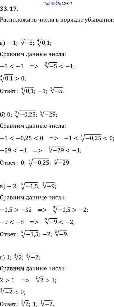 Представляем вам сборники по Алгебре, с готовыми ответами к Задачнику Мордкович школьной программы для учеников десятый-одиннадцатый класса. Это не просто гдз с ответом, а с подсказками, как верно решить §33. Понятие корня n-й степени из действительного числа Глава 6 33. 17. Проверяй домашку с умом и получай высший балл!