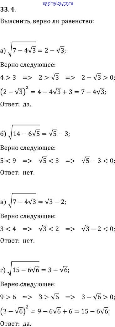 Представляем вам сборники по Алгебре, с готовыми ответами к Задачнику Мордкович школьной программы для учеников десятый-одиннадцатый класса. Это не просто гдз с ответом, а с подсказками, как верно решить §33. Понятие корня n-й степени из действительного числа Глава 6 33. 4. Проверяй домашку с умом и получай высший балл!