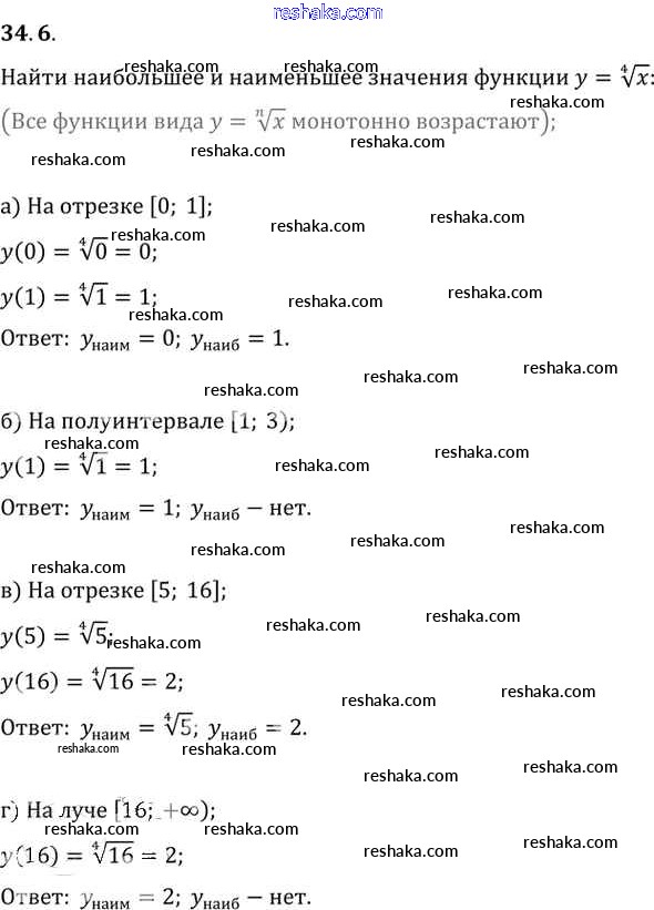 Представляем вам сборники по Алгебре, с готовыми ответами к Задачнику Мордкович школьной программы для учеников десятый-одиннадцатый класса. Это не просто гдз с ответом, а с подсказками, как верно решить §34. Функции y = ⁿ√x, их свойства и графики Глава 6 34. 6. Проверяй домашку с умом и получай высший балл!