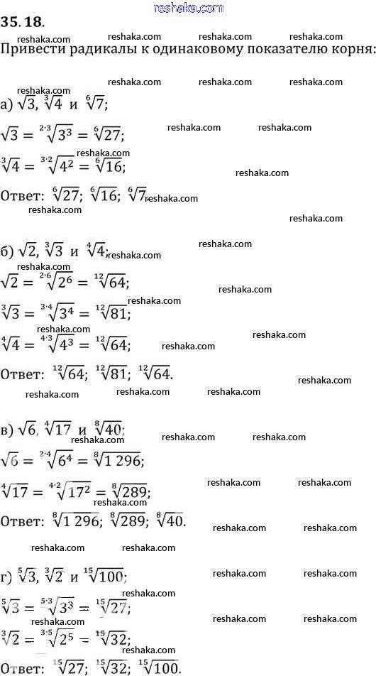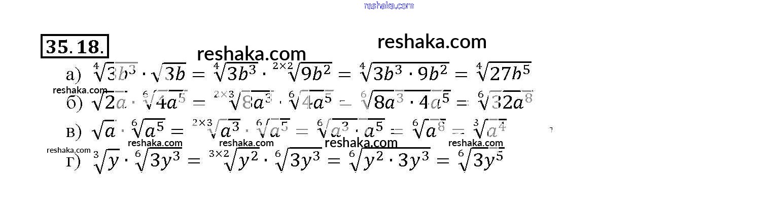 Представляем вам сборники по Алгебре, с готовыми ответами к Задачнику Мордкович школьной программы для учеников десятый-одиннадцатый класса. Это не просто гдз с ответом, а с подсказками, как верно решить §35. Свойства корня n-й степени Глава 6 35. 18. Проверяй домашку с умом и получай высший балл!