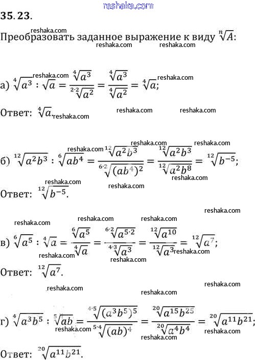 Представляем вам сборники по Алгебре, с готовыми ответами к Задачнику Мордкович школьной программы для учеников десятый-одиннадцатый класса. Это не просто гдз с ответом, а с подсказками, как верно решить §35. Свойства корня n-й степени Глава 6 35. 23. Проверяй домашку с умом и получай высший балл!