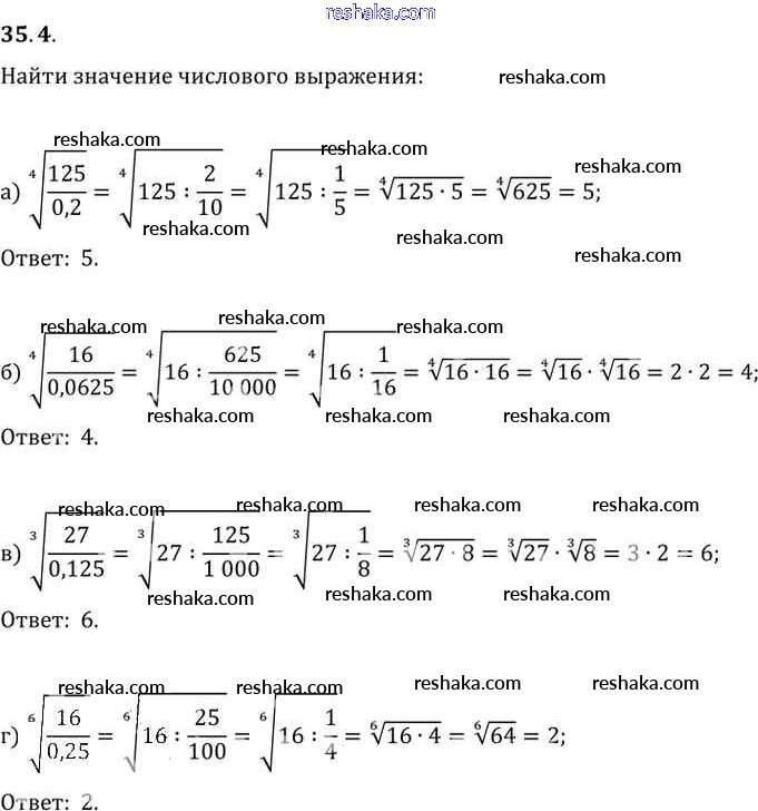 Представляем вам сборники по Алгебре, с готовыми ответами к Задачнику Мордкович школьной программы для учеников десятый-одиннадцатый класса. Это не просто гдз с ответом, а с подсказками, как верно решить §35. Свойства корня n-й степени Глава 6 35. 4. Проверяй домашку с умом и получай высший балл!