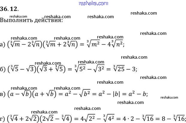 Представляем вам сборники по Алгебре, с готовыми ответами к Задачнику Мордкович школьной программы для учеников десятый-одиннадцатый класса. Это не просто гдз с ответом, а с подсказками, как верно решить §36. Преобразование выражений, содержащих радикалы Глава 6 36. 12. Проверяй домашку с умом и получай высший балл!