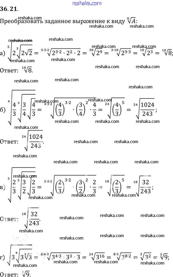 Представляем вам сборники по Алгебре, с готовыми ответами к Задачнику Мордкович школьной программы для учеников десятый-одиннадцатый класса. Это не просто гдз с ответом, а с подсказками, как верно решить §36. Преобразование выражений, содержащих радикалы Глава 6 36. 21. Проверяй домашку с умом и получай высший балл!