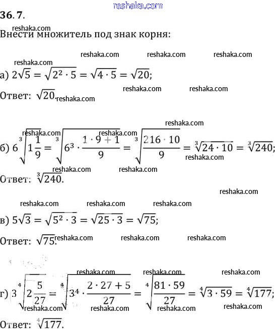 Представляем вам сборники по Алгебре, с готовыми ответами к Задачнику Мордкович школьной программы для учеников десятый-одиннадцатый класса. Это не просто гдз с ответом, а с подсказками, как верно решить §36. Преобразование выражений, содержащих радикалы Глава 6 36. 7. Проверяй домашку с умом и получай высший балл!