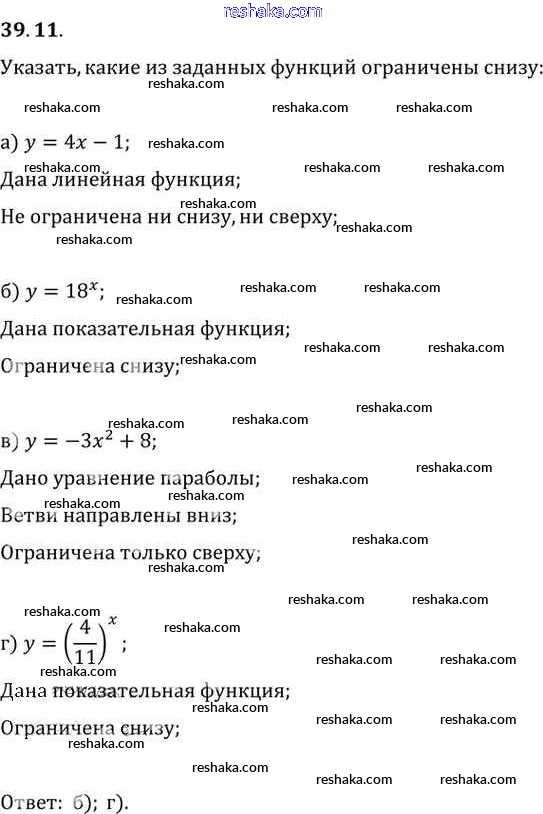 Представляем вам сборники по Алгебре, с готовыми ответами к Задачнику Мордкович школьной программы для учеников десятый-одиннадцатый класса. Это не просто гдз с ответом, а с подсказками, как верно решить §39. Показательная функция, ее свойства и график Глава 7 39. 11. Проверяй домашку с умом и получай высший балл!