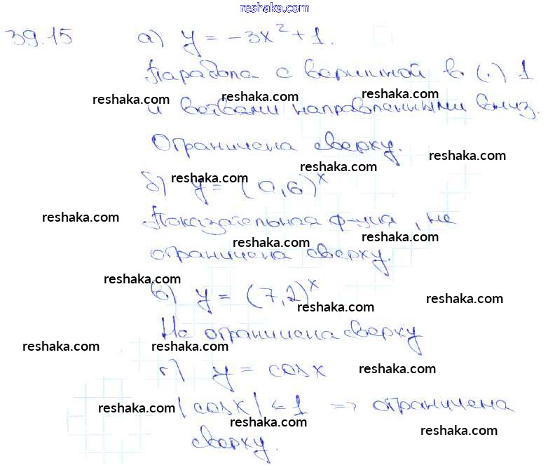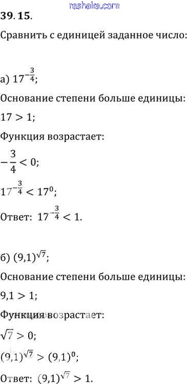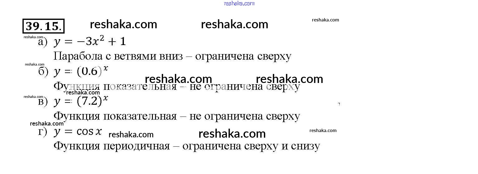 Представляем вам сборники по Алгебре, с готовыми ответами к Задачнику Мордкович школьной программы для учеников десятый-одиннадцатый класса. Это не просто гдз с ответом, а с подсказками, как верно решить §39. Показательная функция, ее свойства и график Глава 7 39. 15. Проверяй домашку с умом и получай высший балл!