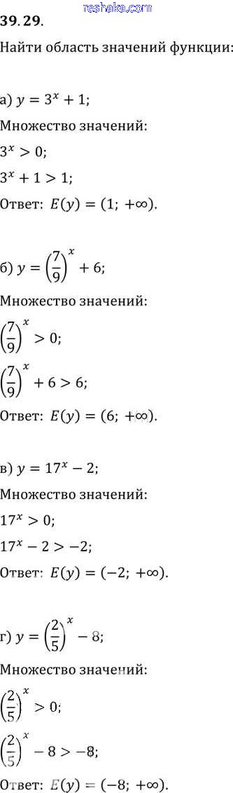 Представляем вам сборники по Алгебре, с готовыми ответами к Задачнику Мордкович школьной программы для учеников десятый-одиннадцатый класса. Это не просто гдз с ответом, а с подсказками, как верно решить §39. Показательная функция, ее свойства и график Глава 7 39. 29. Проверяй домашку с умом и получай высший балл!