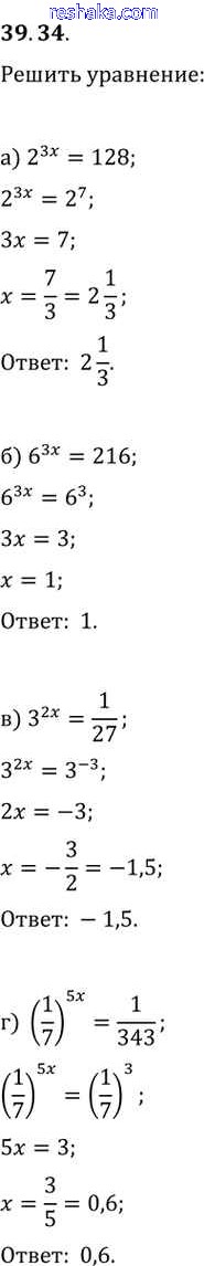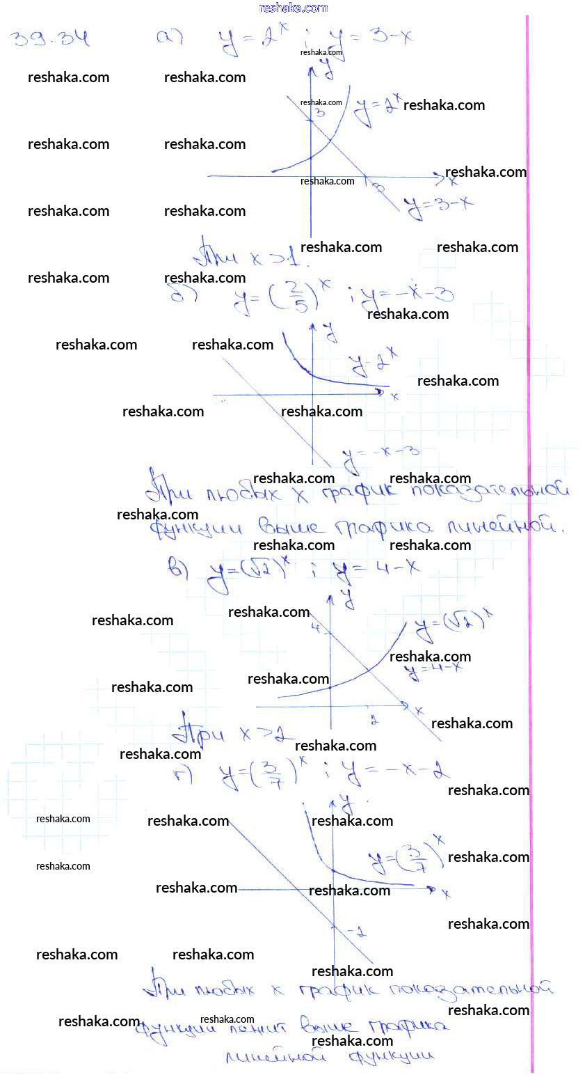 Представляем вам сборники по Алгебре, с готовыми ответами к Задачнику Мордкович школьной программы для учеников десятый-одиннадцатый класса. Это не просто гдз с ответом, а с подсказками, как верно решить §39. Показательная функция, ее свойства и график Глава 7 39. 34. Проверяй домашку с умом и получай высший балл!