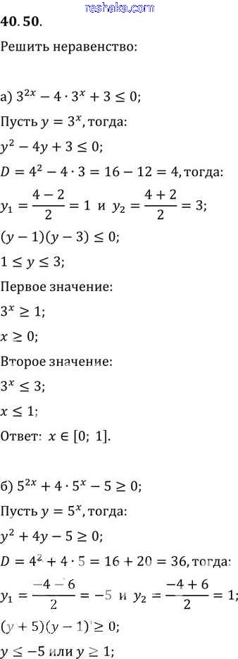 Представляем вам сборники по Алгебре, с готовыми ответами к Задачнику Мордкович школьной программы для учеников десятый-одиннадцатый класса. Это не просто гдз с ответом, а с подсказками, как верно решить §40. Показательные уравнения и неравенства Глава 7 40. 50. Проверяй домашку с умом и получай высший балл!