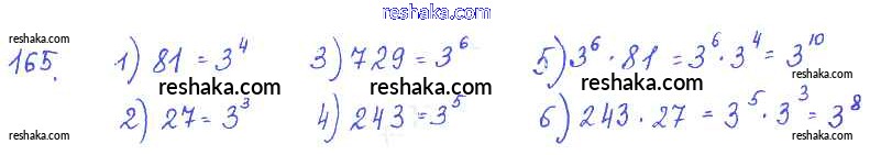 Представляем вам сборники по Алгебре, с готовыми ответами к Учебнику Алимов школьной программы для учеников седьмой класса. Это не просто гдз с ответом, а с подсказками, как верно решить §10. Свойства степени с натуральным показателем Глава 3. Одночлены и многочлены 165. Проверяй домашку с умом и получай высший балл!