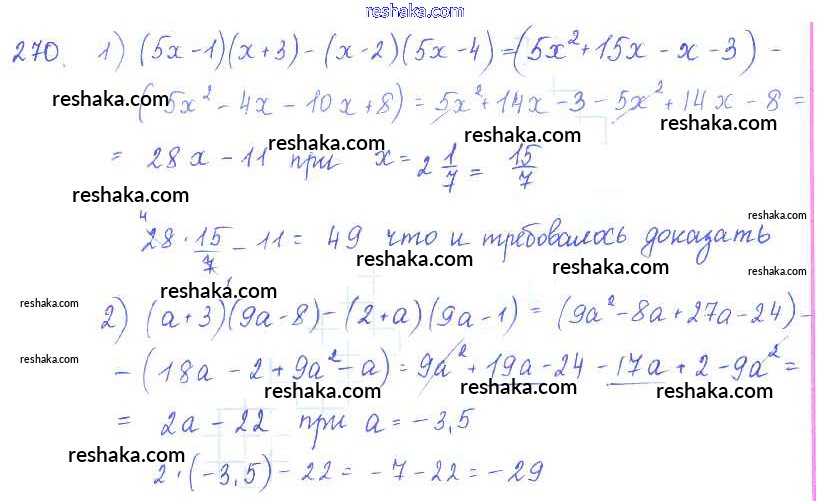 Решака - онлайн ответы Алгебра Алимов, Колягин за 7 класс Учебник ФГОС 2014 - 270