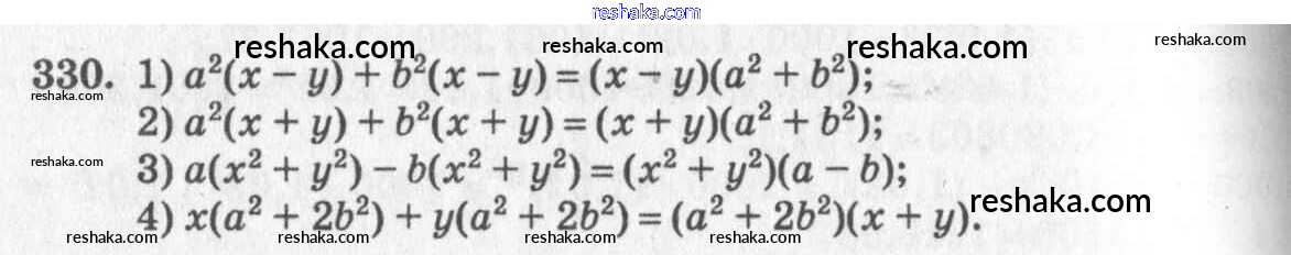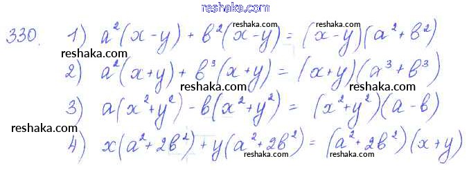 Представляем вам сборники по Алгебре, с готовыми ответами к Учебнику Алимов школьной программы для учеников седьмой класса. Это не просто гдз с ответом, а с подсказками, как верно решить §19. Вынесение общего множителя за скобки Глава 4. Разложение многочленов на множители 330. Проверяй домашку с умом и получай высший балл!