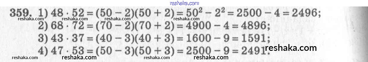 Представляем вам сборники по Алгебре, с готовыми ответами к Учебнику Алимов школьной программы для учеников седьмой класса. Это не просто гдз с ответом, а с подсказками, как верно решить §21. Формула разности квадратов Глава 4. Разложение многочленов на множители 359. Проверяй домашку с умом и получай высший балл!