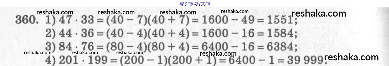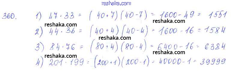 Представляем вам сборники по Алгебре, с готовыми ответами к Учебнику Алимов школьной программы для учеников седьмой класса. Это не просто гдз с ответом, а с подсказками, как верно решить §21. Формула разности квадратов Глава 4. Разложение многочленов на множители 360. Проверяй домашку с умом и получай высший балл!