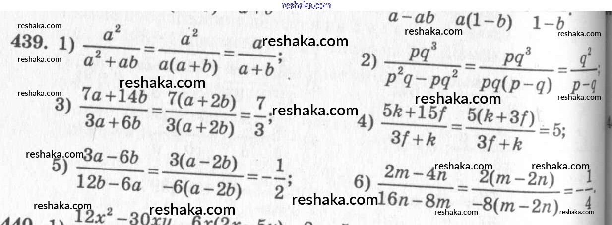 Представляем вам сборники по Алгебре, с готовыми ответами к Учебнику Алимов школьной программы для учеников седьмой класса. Это не просто гдз с ответом, а с подсказками, как верно решить §24. Алгебраическая дробь. Сокращение дробей Глава 5. Алгебраические дроби 439. Проверяй домашку с умом и получай высший балл!
