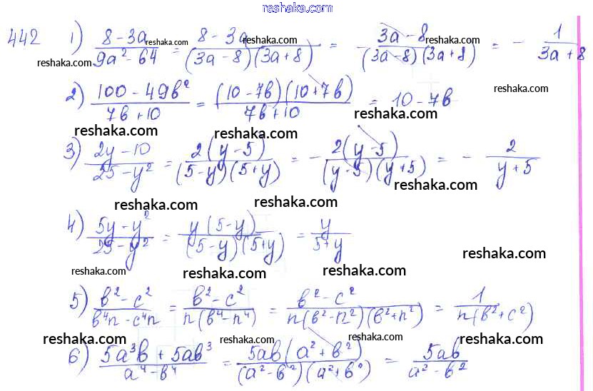 Представляем вам сборники по Алгебре, с готовыми ответами к Учебнику Алимов школьной программы для учеников седьмой класса. Это не просто гдз с ответом, а с подсказками, как верно решить §24. Алгебраическая дробь. Сокращение дробей Глава 5. Алгебраические дроби 442. Проверяй домашку с умом и получай высший балл!