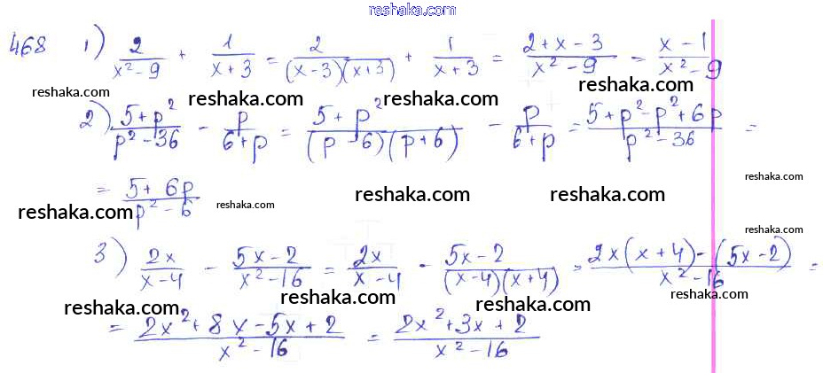 Представляем вам сборники по Алгебре, с готовыми ответами к Учебнику Алимов школьной программы для учеников седьмой класса. Это не просто гдз с ответом, а с подсказками, как верно решить §26. Сложение и вычитание алгебраических дробей Глава 5. Алгебраические дроби 468. Проверяй домашку с умом и получай высший балл!