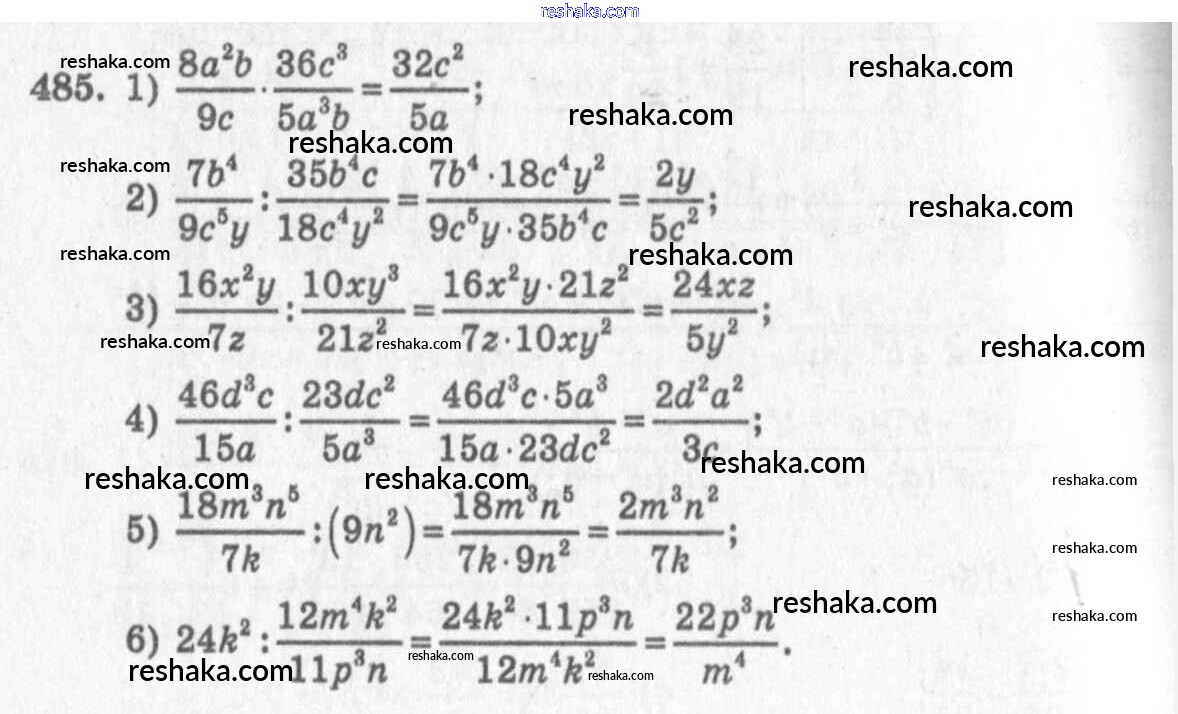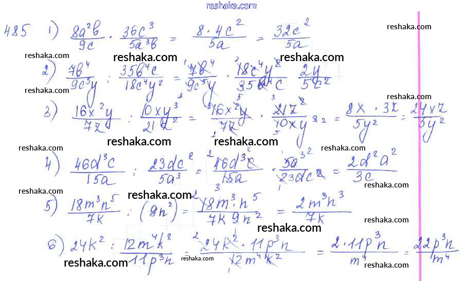 Представляем вам сборники по Алгебре, с готовыми ответами к Учебнику Алимов школьной программы для учеников седьмой класса. Это не просто гдз с ответом, а с подсказками, как верно решить §27. Умножение и деление алгебраических дробей Глава 5. Алгебраические дроби 485. Проверяй домашку с умом и получай высший балл!