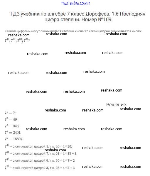Решака - онлайн ответы Алгебра Дорофеев, Суворова за 7 класс Учебник ФГОС 2020 - 109