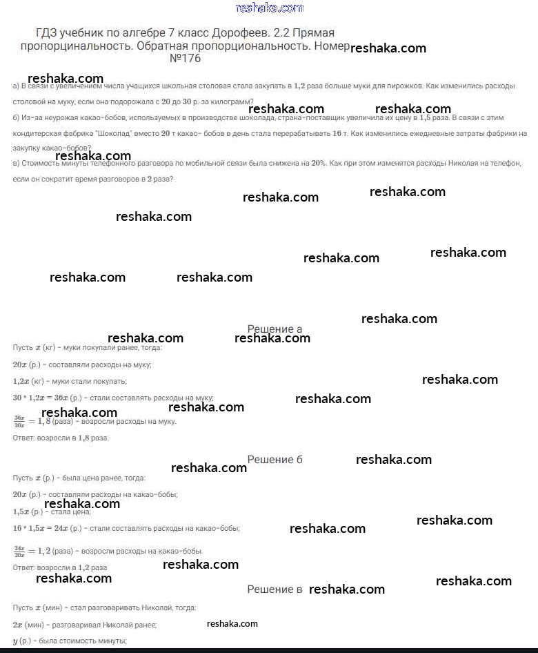Решака - онлайн ответы Алгебра Дорофеев, Суворова за 7 класс Учебник ФГОС 2020 - 176