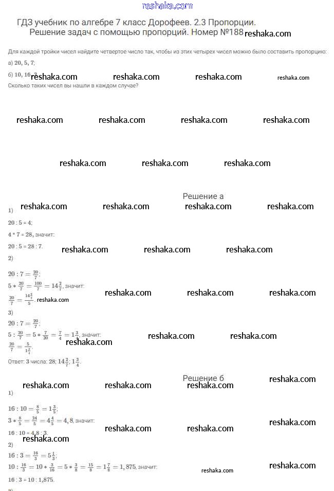 Решака - онлайн ответы Алгебра Дорофеев, Суворова за 7 класс Учебник ФГОС 2020 - 188