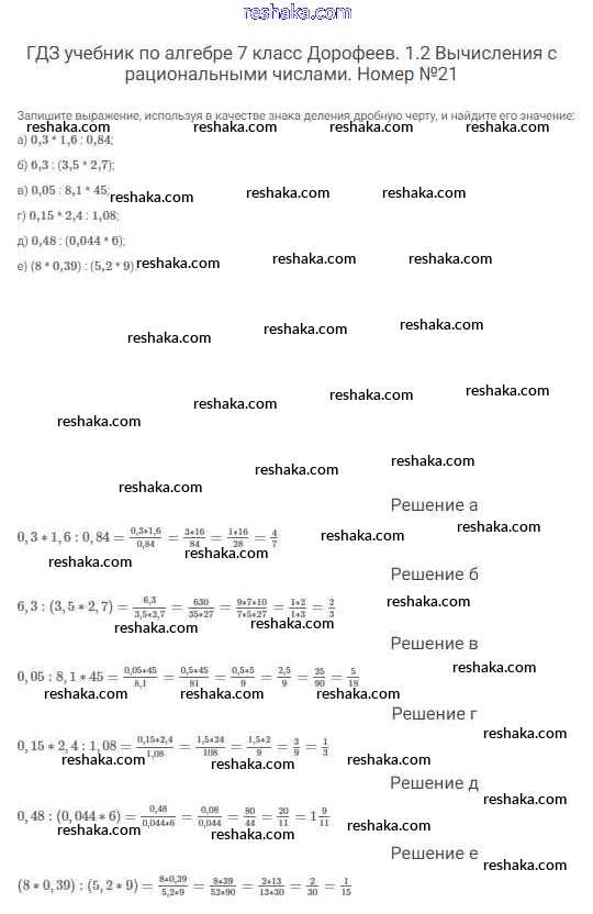 Представляем вам сборники по Алгебре, с готовыми ответами к Учебнику Дорофеев школьной программы для учеников седьмой класса. Это не просто гдз с ответом, а с подсказками, как верно решить Упражнения 21. Проверяй домашку с умом и получай высший балл!
