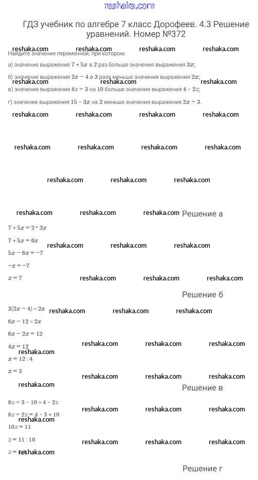 Решака - онлайн ответы Алгебра Дорофеев, Суворова за 7 класс Учебник ФГОС 2020 - 372