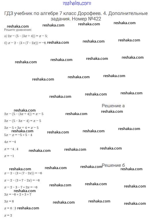 Решака - онлайн ответы Алгебра Дорофеев, Суворова за 7 класс Учебник ФГОС 2020 - 422