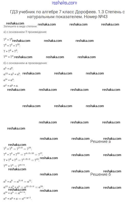 Решака - онлайн ответы Алгебра Дорофеев, Суворова за 7 класс Учебник ФГОС 2020 - 43