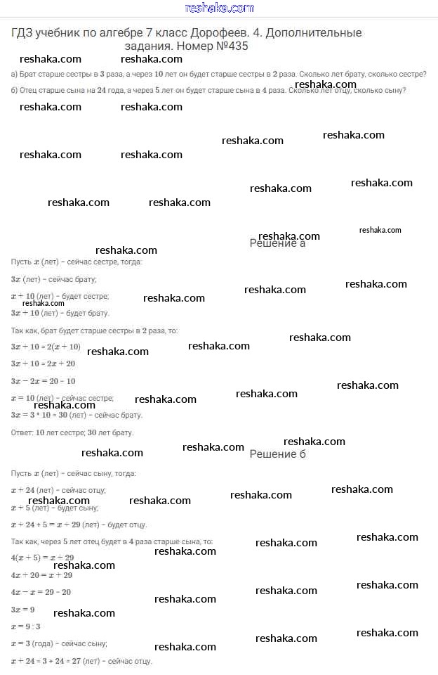 Решака - онлайн ответы Алгебра Дорофеев, Суворова за 7 класс Учебник ФГОС 2020 - 435