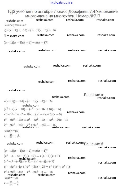 Решака - онлайн ответы Алгебра Дорофеев, Суворова за 7 класс Учебник ФГОС 2020 - 717
