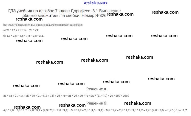 Представляем вам сборники по Алгебре, с готовыми ответами к Учебнику Дорофеев школьной программы для учеников седьмой класса. Это не просто гдз с ответом, а с подсказками, как верно решить Упражнения 826. Проверяй домашку с умом и получай высший балл!