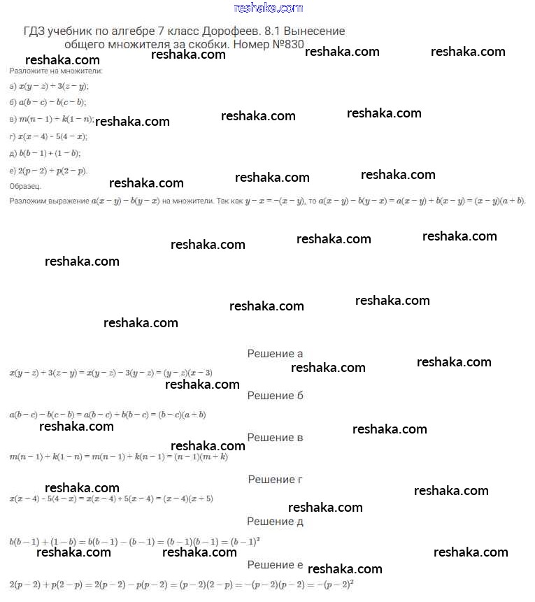 Решака - онлайн ответы Алгебра Дорофеев, Суворова за 7 класс Учебник ФГОС 2020 - 830