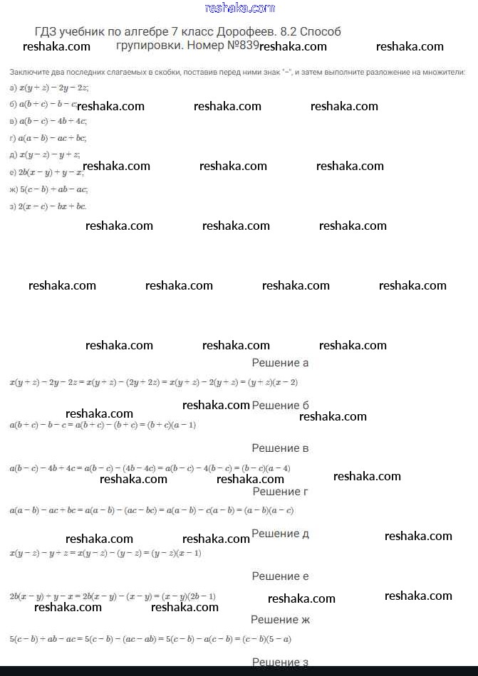 Решака - онлайн ответы Алгебра Дорофеев, Суворова за 7 класс Учебник ФГОС 2020 - 839