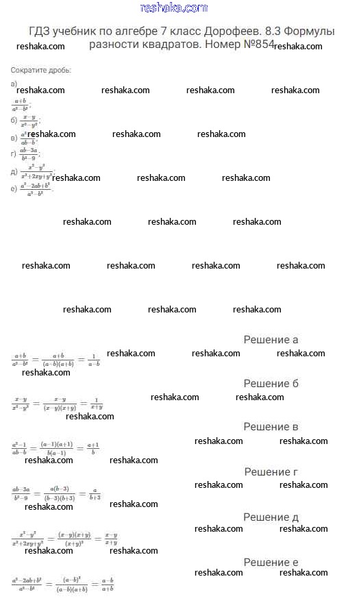 Решака - онлайн ответы Алгебра Дорофеев, Суворова за 7 класс Учебник ФГОС 2020 - 854