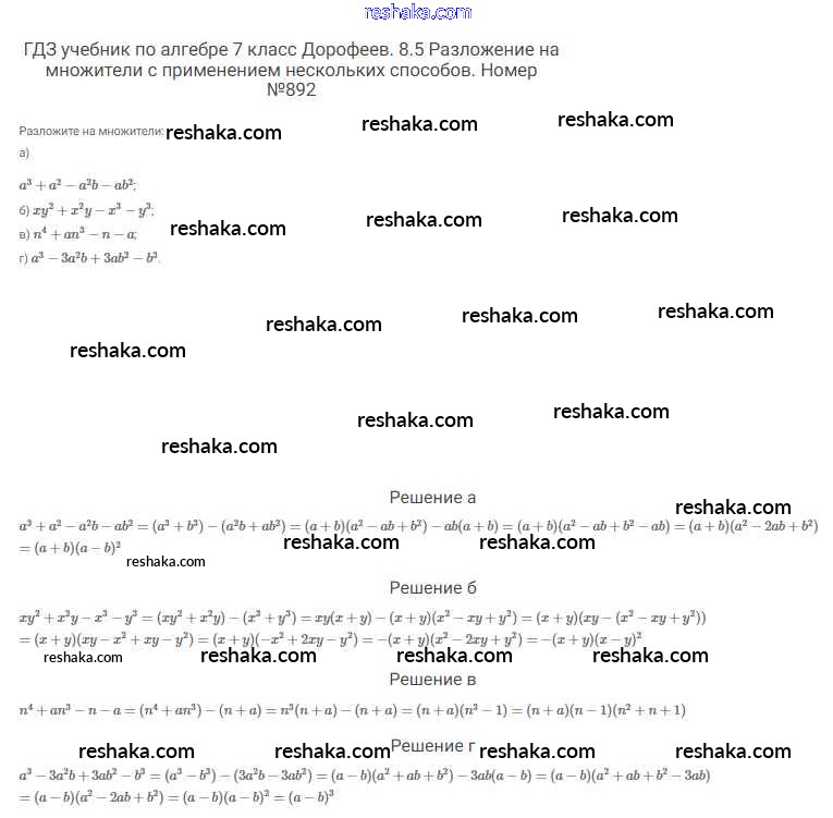 Решака - онлайн ответы Алгебра Дорофеев, Суворова за 7 класс Учебник ФГОС 2020 - 892